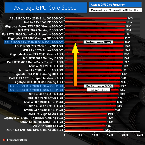 Here, we take a further look at the impact of our overclock, looking at the increased temperatures, acoustics, power draw, and lastly, the effect had on the average clock speed.