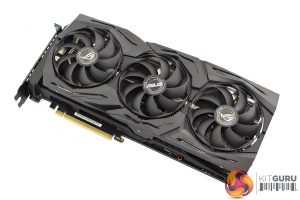Getting our first look at the card itself, it is essentially indistinguishable from the Strix 2080 model. As far as I can tell, the cooler and shroud is exactly the same between both cards – if you had the two side by side, it would be almost impossible to say which was which.