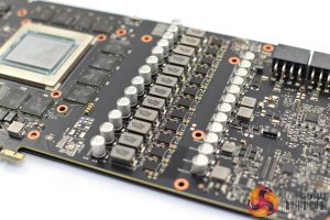 Another thing worth noting is the BIOS switch at the top of the PCB. This lets users choose between the ‘performance’ BIOS or the ‘quiet’ BIOS – the only change is the fan curve is drastically reduced when using the card with its quiet BIOS. This is something we test later in the review.