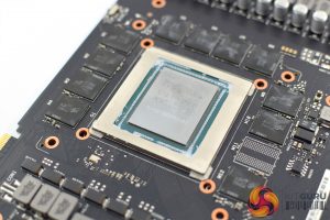 Elsewhere, our 11GB of GDDR6 memory comes from Micron, with the chips labelled ‘8QA77D9WCW'. The RTX 2080 Ti uses the TU102 GPU, and this is labelled ‘TU102-300A', with the ‘A' designating that this is a binned chip suitable to be sold with a factory overclock.