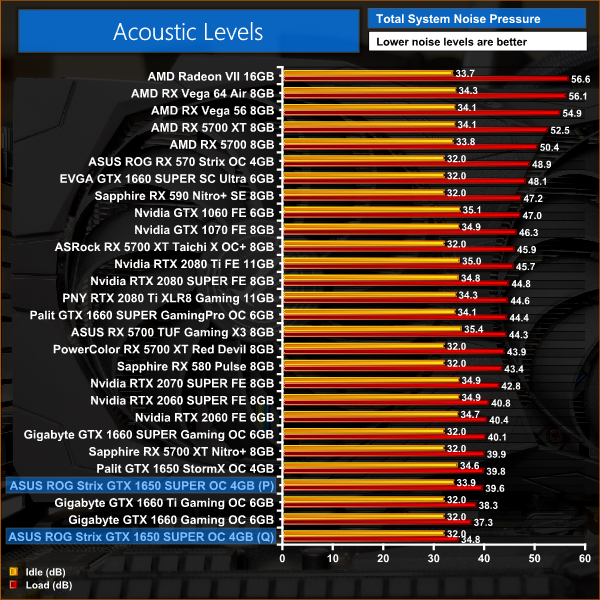 As for noise levels, we'll start with the P BIOS. In this mode, the fans spun at around 1530rpm, or 46%. Even using that performance BIOS, noise levels did not exceed 40db which is a fantastic result.