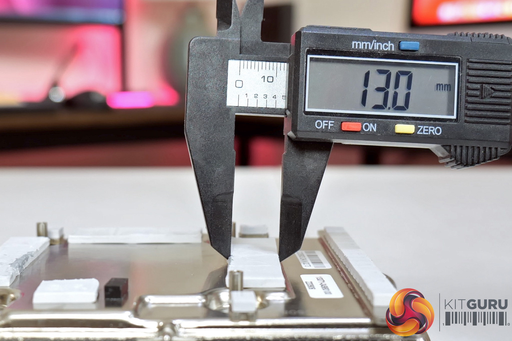 Sure enough, the thermal pad used here is actually narrower than the one on the other side – you might be able to tell just by looking, but I also used my digital calliper and found the left side pad to measure about 13mm wide, compared to just over 11mm on the other side.