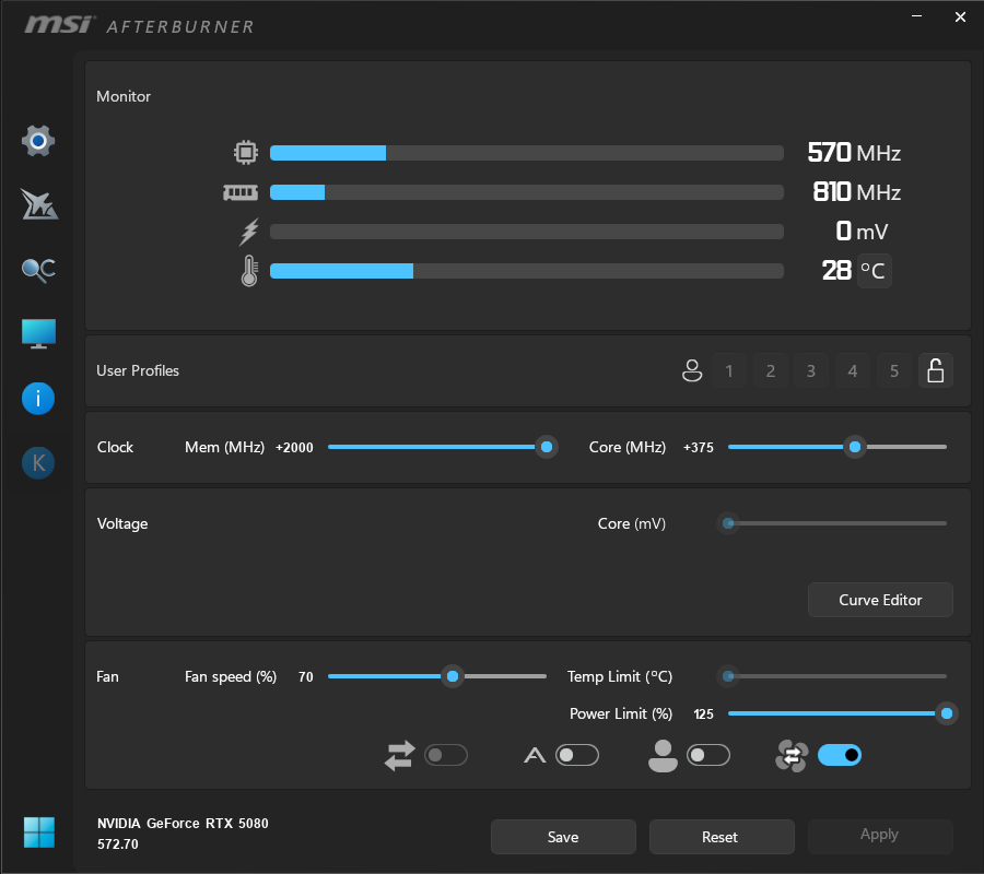 For our manual overclocking tests, we used MSI Afterburner. Our best results are as below.