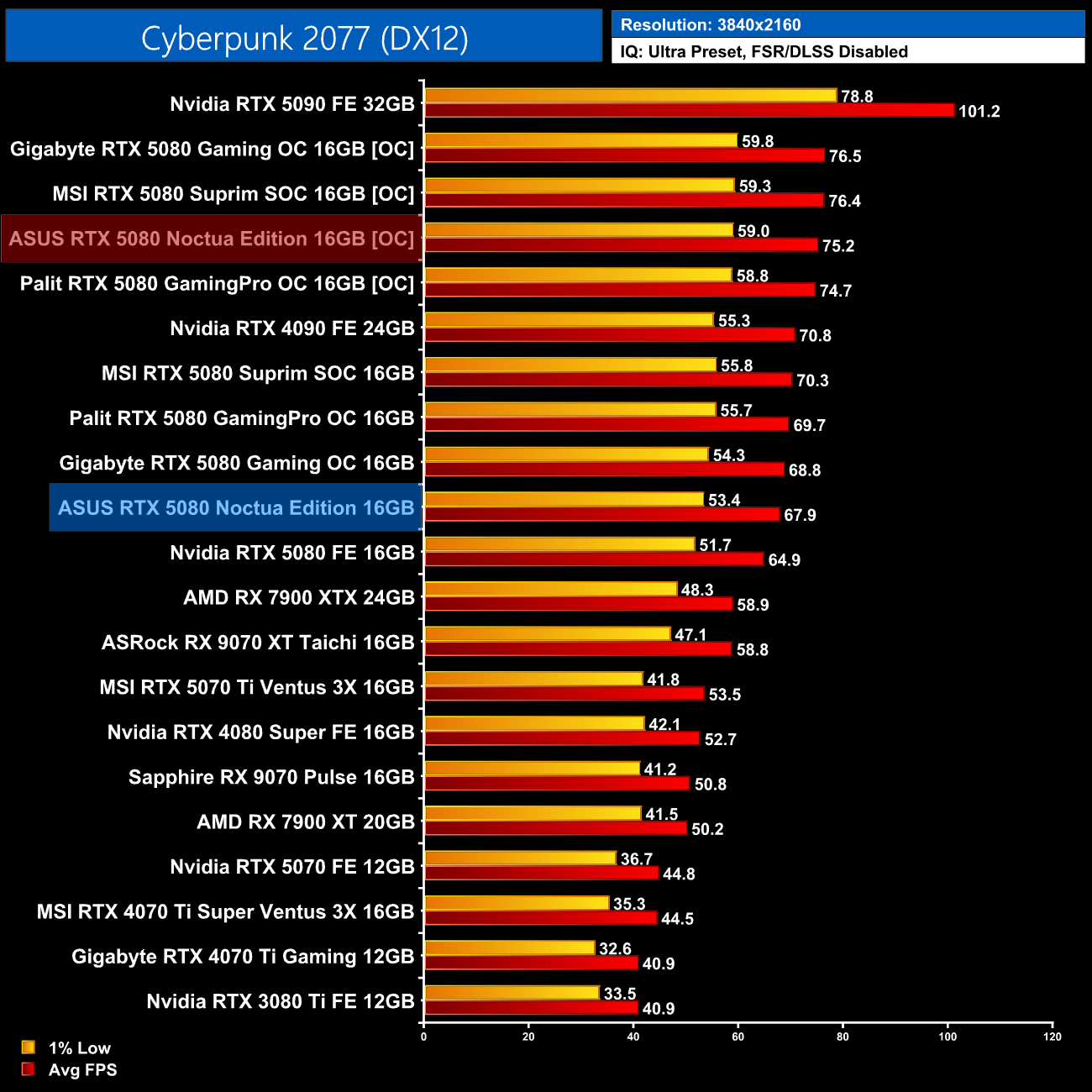 As we've come to expect from the RTX 5080, overclocking headroom is very good indeed, and we saw real-world clock speed right around 3.2GHz, bringing performance gains of 10-12% in the three titles I tested. It didn't overclock any better, or any worse, than the likes of the Suprim SOC, but it goes to show what can be achieved with this GPU.