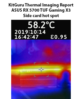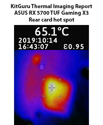 Lastly, a look at our thermal images shows the card itself does not get that hot at all, peaking at 65.1C on the rear of the PCB.