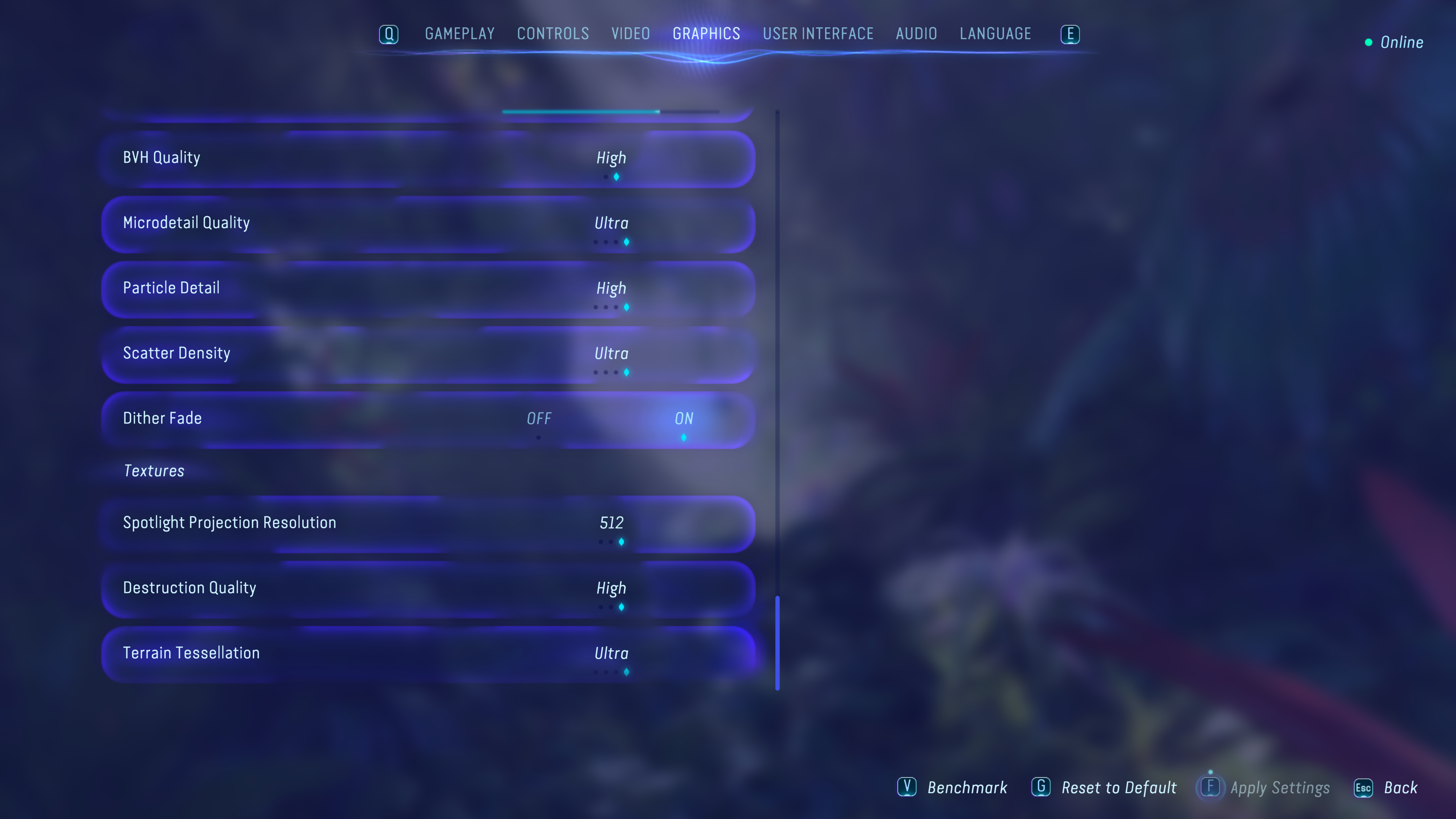 As an aside for those interested, although Avatar does have a built-in benchmark that reports a whole heap of different metrics, I decided to use a custom scene in a jungle area of the open world as it was just a bit heavier overall than the built-in benchmark. I can't yet say if it is a worst case scenario for the game as a whole just yet, but it was certainly above average from what I saw during my initial play through.