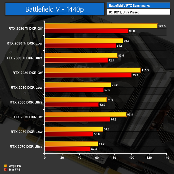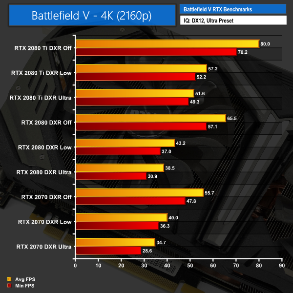 4K is still quite a push with DXR set to Ultra – the RTX 2080 Ti averages just over 50FPS, which is still very impressive in my book – but the other two cards do fall further behind. RTX gaming at 1440p seems the best balance between frame rate and graphical fidelity at the moment, though we will have to see how things develop when more games start to support the technology.
