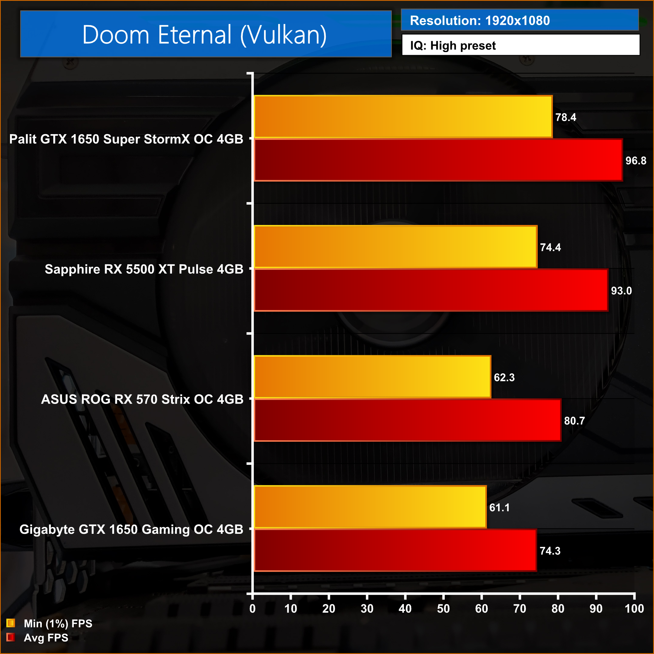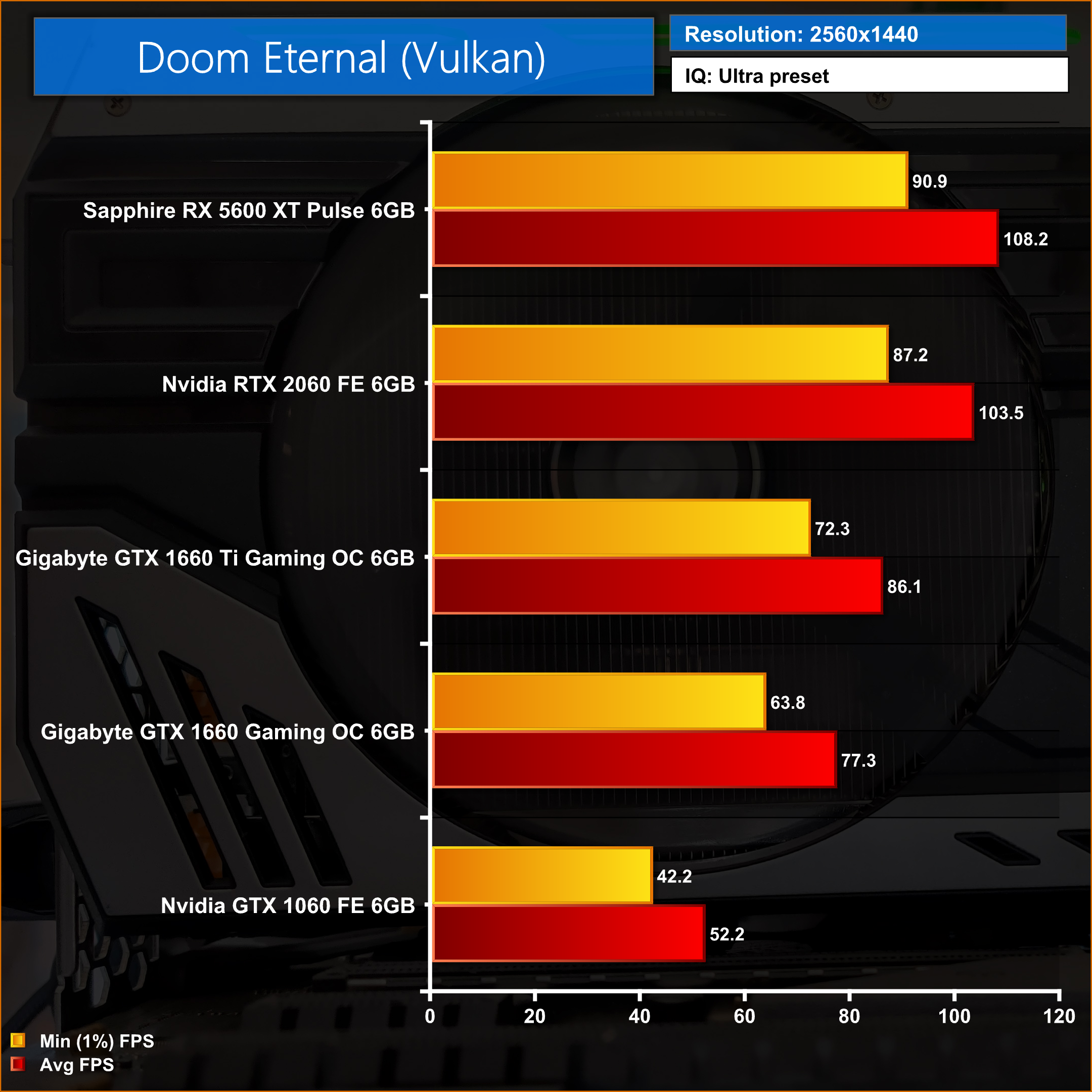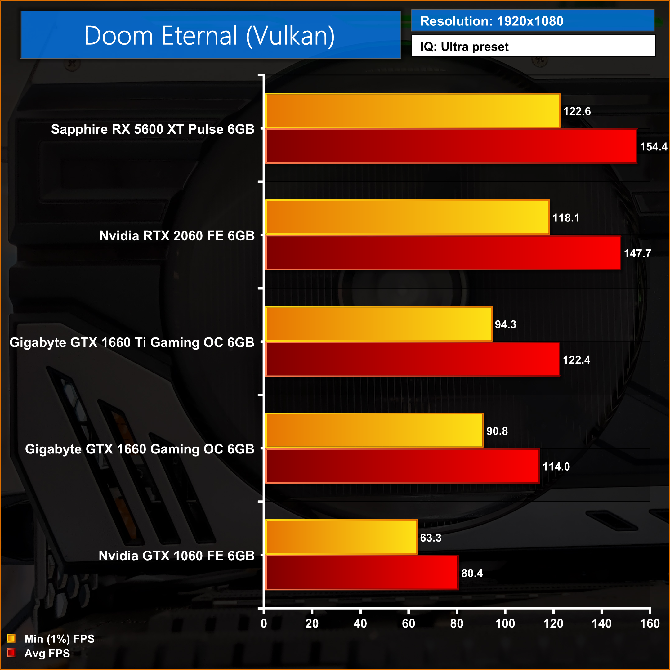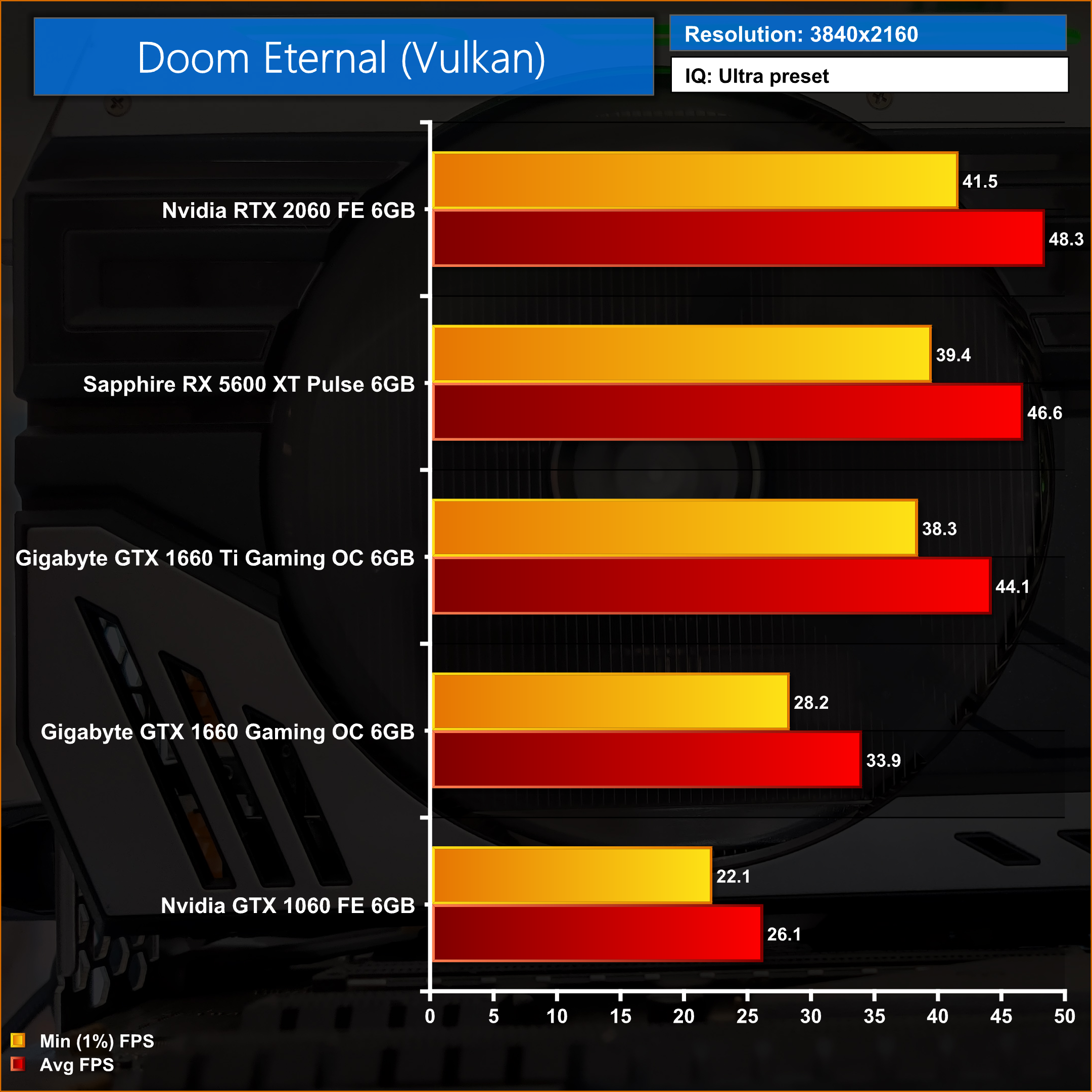 In a nutshell, I think it is crystal clear Doom Eternal runs very, very well on a wide variety of hardware. Gamers with high-end rigs using RTX 2080 Super or RTX 2080 Tis are set for even high-refresh rate 4K gaming, while cards like the RX 5700 XT and RTX 2070 Super can still push over 60fps at 4K, using Ultra Nightmare settings. More mid-range cards like the GTX 1660 and RX 5600 XT are still very ready for Ultra settings at 1440p, and even the GTX 1650 non-Super offers a smooth 1080p experience with High settings.