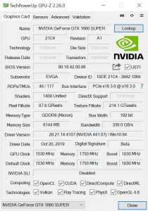 As a quick refresher, GTX 1660 SUPER uses the same TU116 GPU from GTX 1660, with 22 SMs and 1408 CUDA cores – nothing has changed there. The difference is that 1660 SUPER uses 14Gbps GDDR6 memory, when the vanilla 1660 uses 8Gbps GDDR5 memory. That, and a resulting 5W different in TGP (Total Graphics Power), are the only differences between 1660 and 1660 SUPER.