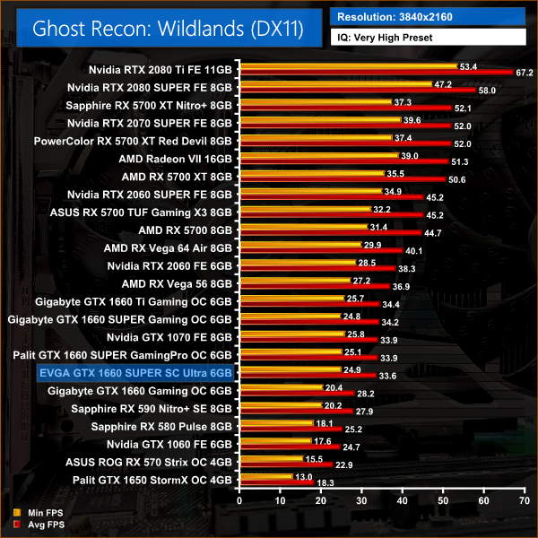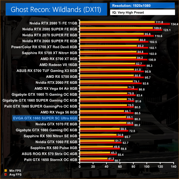Things are particularly close in this title, where there's just 1.3FPS between our 1660 SUPER cards at 1080p.