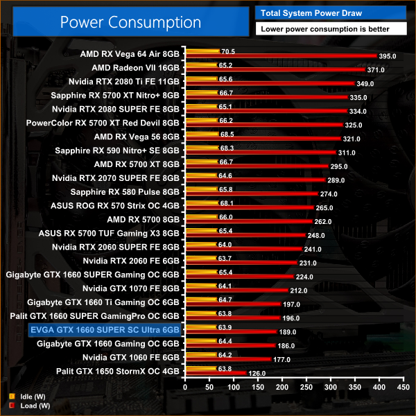 Power draw is the lowest from any 1660 SUPER card, which makes sense as this is the slowest-clocked card, while it also has no LED lighting which can make a slight difference to power consumption.