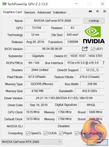With the same number of CUDA cores (2944), Tensor cores (368) and RT cores (46) as any other RTX 2080, what helps differentiate this Xtreme edition is its 1890MHz boost clock, which is the joint fastest we have seen – tied with the Palit GameRock Premium.