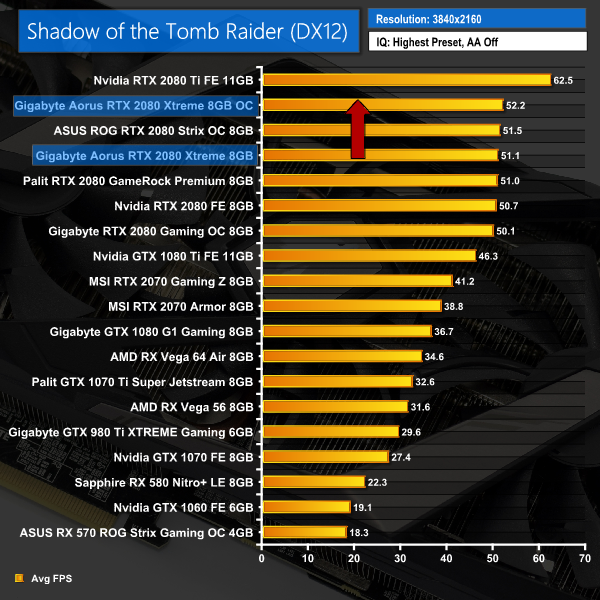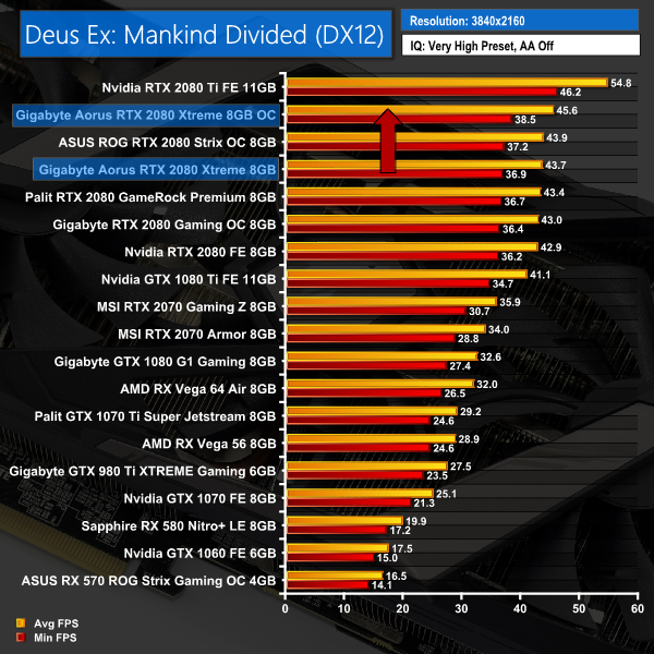Not surprisingly, this overclock didn't bring massive gains – we saw a jump of just over 1000 points in Fire Strike which proved to be the biggest margin of increase, but we only saw an extra 1-2FPS in Deus Ex: Mankind Divided and Shadow of the Tomb Raider when played at 4K resolution.