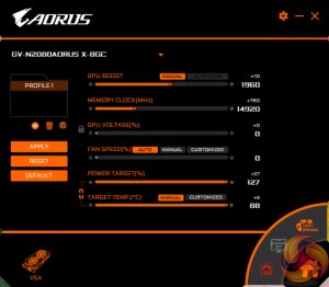 Considering this card is already factory overclocked to 1890MHz – a full 180MHz faster than reference – I was not expecting much in the way of manual overclocking headroom. Sadly, that is exactly how it played out, as I could only add +70MHz to the GPU core. The already overclocked memory, however, was receptive to another +780MHz, though, bringing the total speed to 14920MHz.
