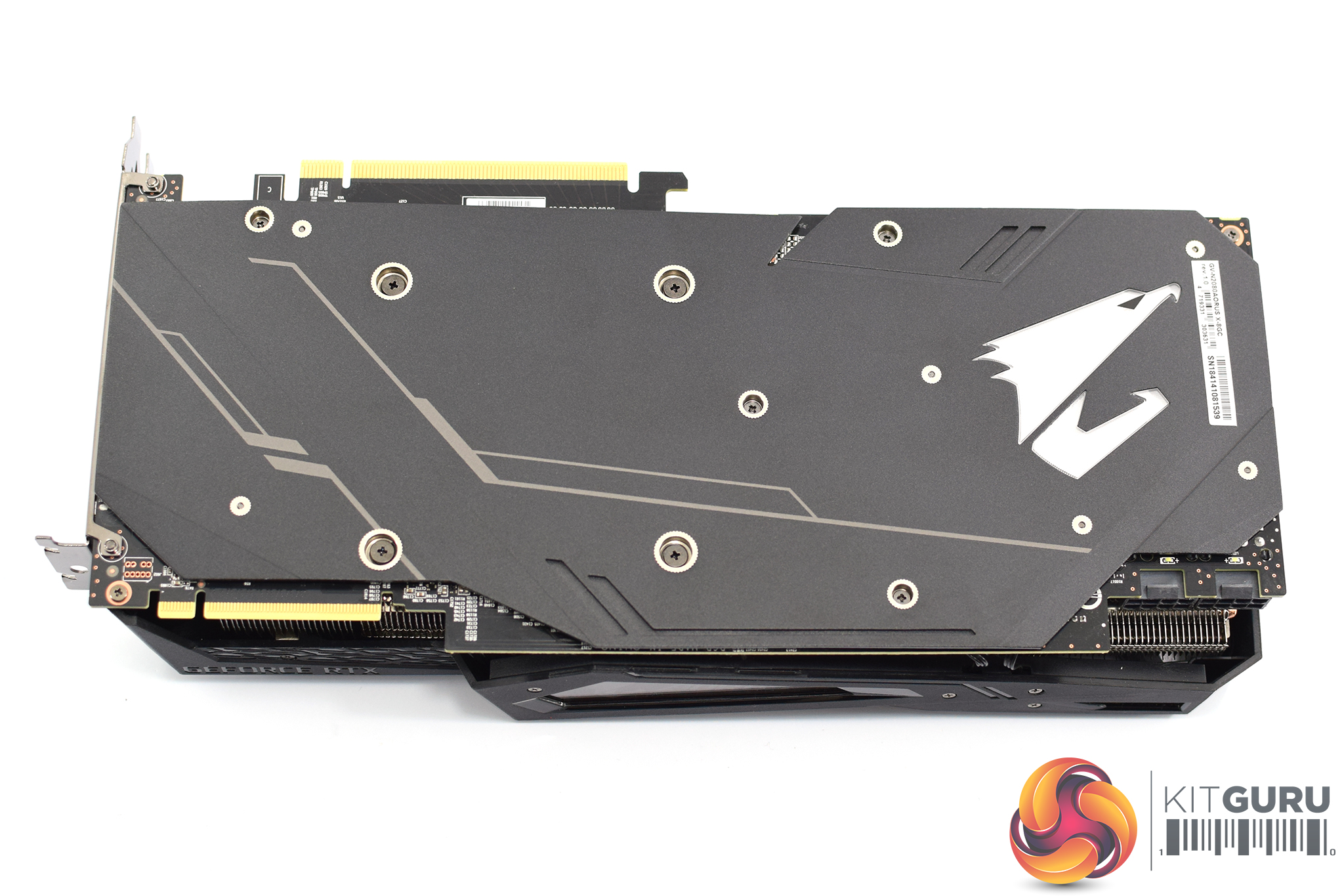 The backplate is made of anodised aluminium and again features the Aorus eagle logo on the right-hand edge.