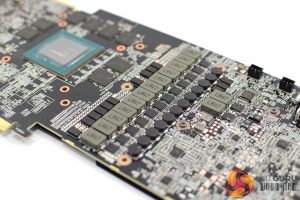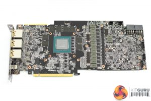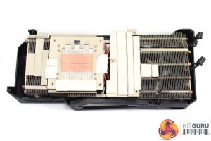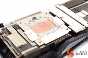 The cooler itself weighs just over 900g and uses seven copper heatpipes, each of which measures 6mm. These make direct contact with the GPU die which is an interesting decision, as I would have thought the outer two heatpipes would be making very little contact with the GPU core, thus reducing thermal transfer – but we will look at GPU temperatures later in the review.
