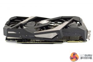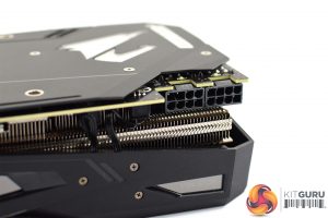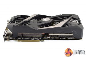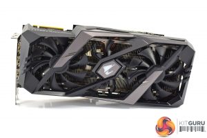 Taking a look at the card from the side, it is clearly a monster. It measures 290mm x 134.31mm x 59.9mm (L x W x H), making it effectively a triple slot card. Given this size, and its weight of 1.35KG according to my scales, it is easy to understand why Aorus included the support bracket in the box!