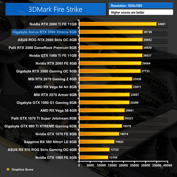 It's a good start for the Aorus RTX 2080 Xtreme. There is some variation in scores across the three different tests, but in every one it is right up there with the fastest RTX 2080s we have tested so far – namely, the ASUS ROG Strix 2080 and the Palit GameRock Premium 2080.