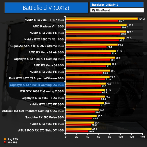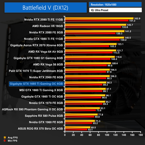 We test using the Ultra preset with the DX12 API. We usually include ray tracing results with BFV, but we have excluded those here as DXR is not a feature applicable to the GTX 1660 Ti.