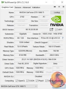 The only real difference between this Gigabyte card and the reference spec for GTX 1660 Ti is the clock speed – as mentioned, the OC 6G has been overclocked by 30MHz to give a rated boost clock of 1800MHz. This is 75MHz slower than what MSI achieved with its Gaming X, so it will be interesting to see what kind of performance difference this works out to when we get to our game testing.