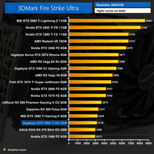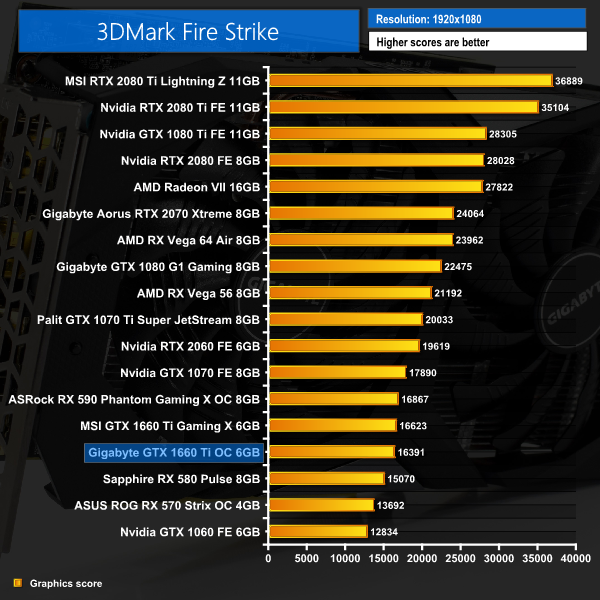 Unsurprisingly, our initial testing shows the Gigabyte OC 6G sitting just below the MSI Gaming X GTX 1660 Ti. Considering the MSI card is clocked 75MHz faster, the small but just about noticeable performance gap is to be expected.