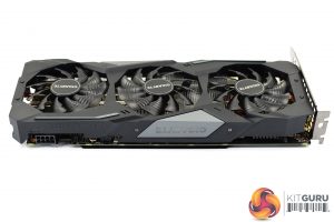 It's good to see a triple-fan cooler used, though, and here each fan measures 80mm in diameter. These also use Gigabyte's Alternate Spinning technology, where the outer two fans spin counter-clockwise while the inner fan spins clockwise. Gigabyte says this reduces turbulence and thus increases airflow pressure, but we will get to thermal dynamics later in the review.