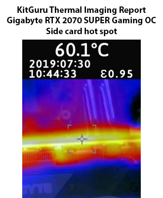 Our thermal gun showed no areas of concern for the Gaming OC, either, with hot spots at or around the 60C mark on the card. Both results are highly impressive.