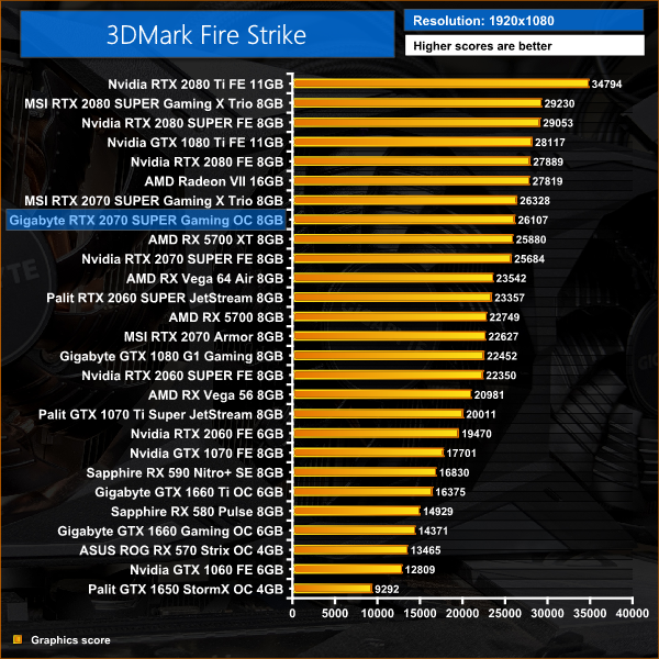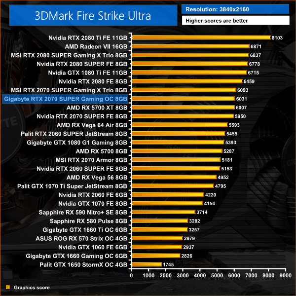 Things start pretty much as expected for the Gigabyte card, as it proves faster than the 2070 SUPER Founders Edition across all three tests. The MSI Gaming X Trio model, however, is itself marginally faster than the Gaming OC.