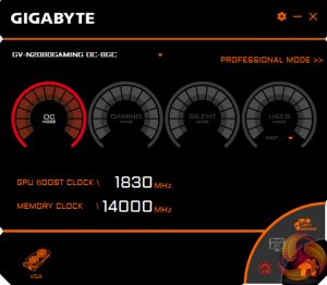 The supplied utility tool, named Aorus Engine, does allow users to enable the ‘OC Mode' which brings the boost clock up to 1830MHz – another 15MHz on top of the out of the box speed. Memory speed is left at 14000MHz. To show the card in its best light, this is the mode we did our testing in.