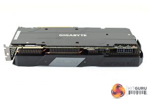 The back of the card features a full-length metal backplate (it looks and feels like anodised aluminium) with a Gigabyte logo printed in white letters – and this logo is not an RGB zone. It's overall simple but effective, and it certainly won't cause any problems for those with a colour-matched build.