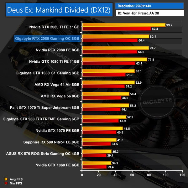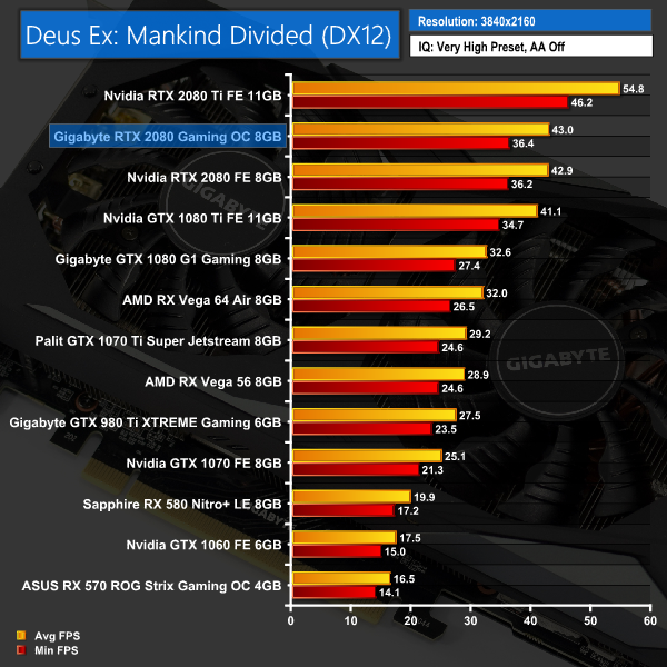 At 1080p, the Gaming OC is just behind the Founders Edition once again, but the Gigabyte card nudges ahead at 1440p and 4K. In any case, the difference between the two is only 0.4FPS at its biggest!