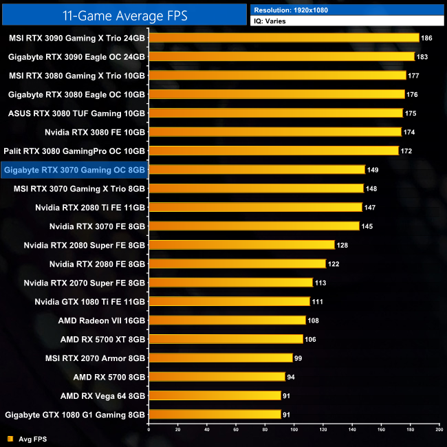 Here we present frame rate figures for each graphics card, averaged across all 11 games on test today. These figures can disguise significant variations in performance from game to game, but provide a useful overview of the sort of performance you can expect at each resolution tested.