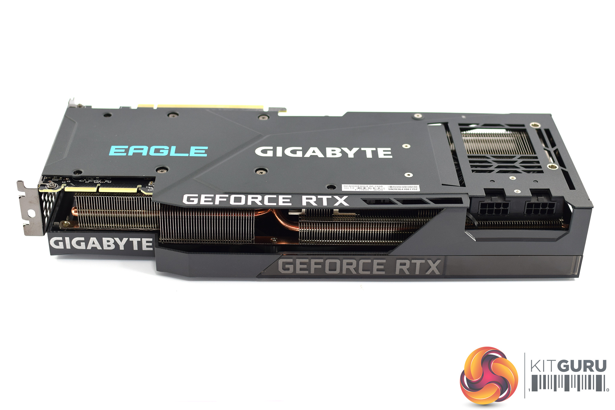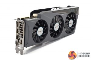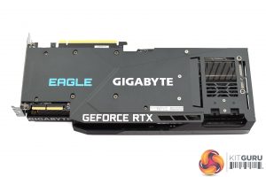 Despite a rated TGP of 350W, Gigabyte has stuck with 2x 8-pin power connectors for the RTX 3090 Eagle OC. These can each provide 150W, while another 75W from the PCIe slot gives about 25W headroom for the card.
