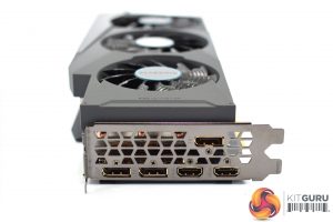 We can also see a large cut-out in the backplate at the end of the card, allowing air to pass directly through the heatsink and out of the back of the card into your chassis.