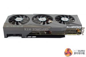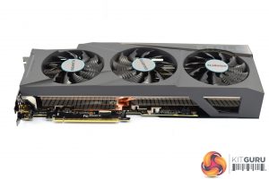 It's certainly a big card. While we don’t have official dimensions from Gigabyte at the time of writing, my measurements put the overall size at approximately 32cm x 13cm x 5.5cm. It requires three expansion slots in your system.