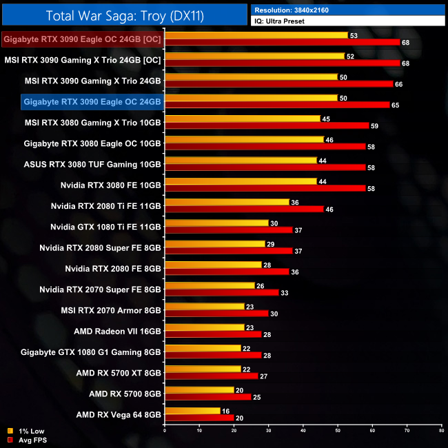 Still, real-world gains from this overclock weren't huge, as we saw an extra 5% at most when testing Gears 5, Ghost Recon: Breakpoint, and Total War Saga: Troy.