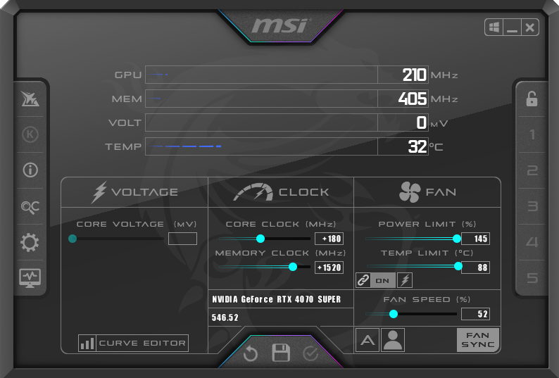 For our manual overclocking tests, we used MSI Afterburner. Our best results are as below.