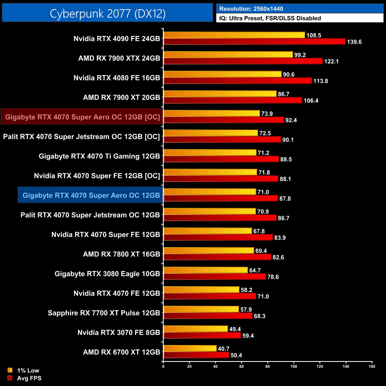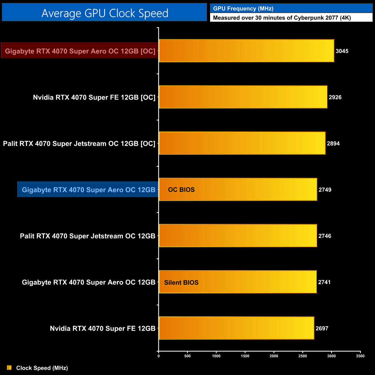 That overclock increased real-world clock speed by a good amount, with a new average frequency of 3045MHz – the highest we've seen from the three 4070 Super cards we have tested so far.