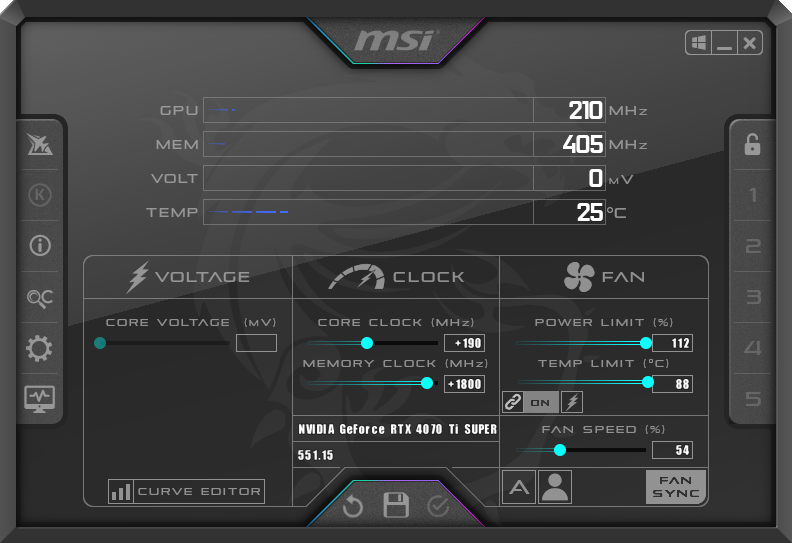 For our manual overclocking tests, we used MSI Afterburner. Our best results are as below.