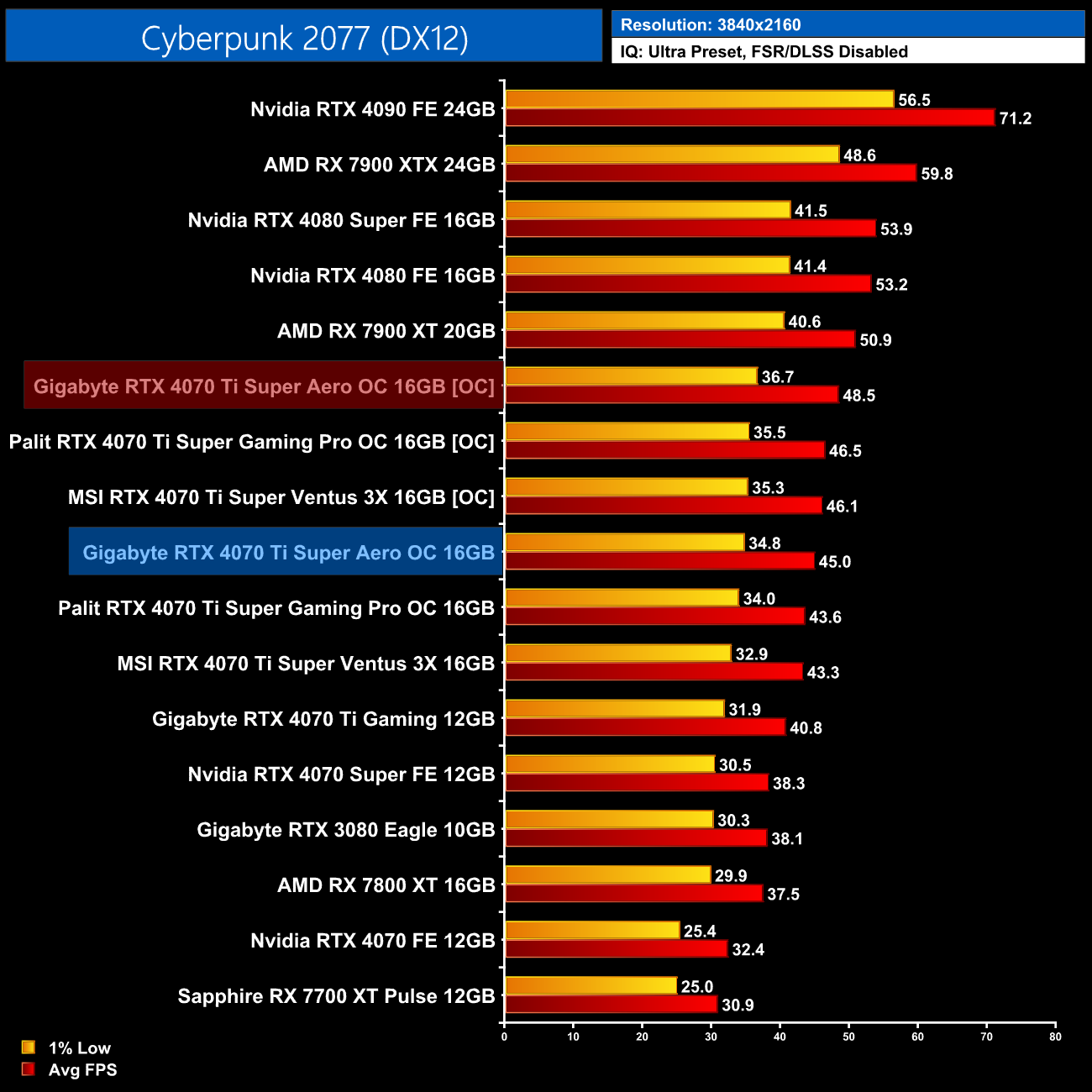 Once again, the overclock saw gains of 8-9% in the three titles we re-tested, which is exactly what we have come to expect from RTX 40-series GPUs.
