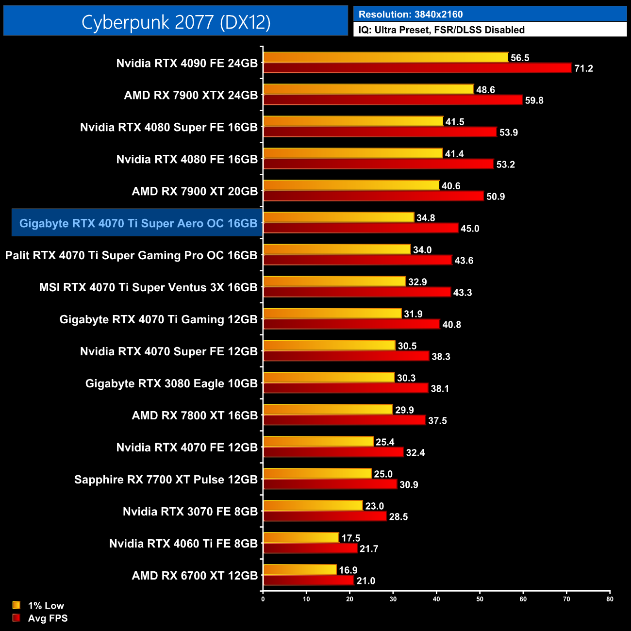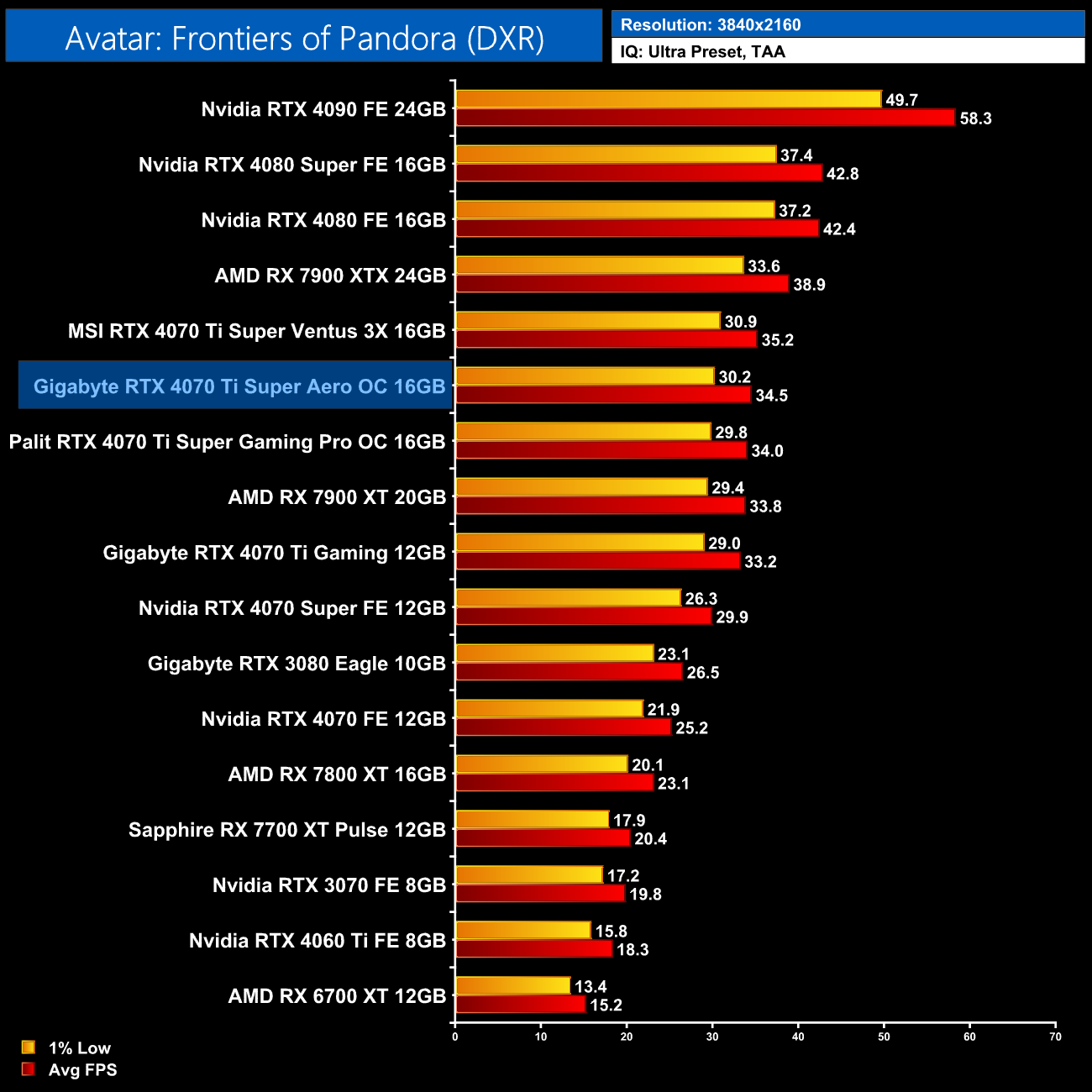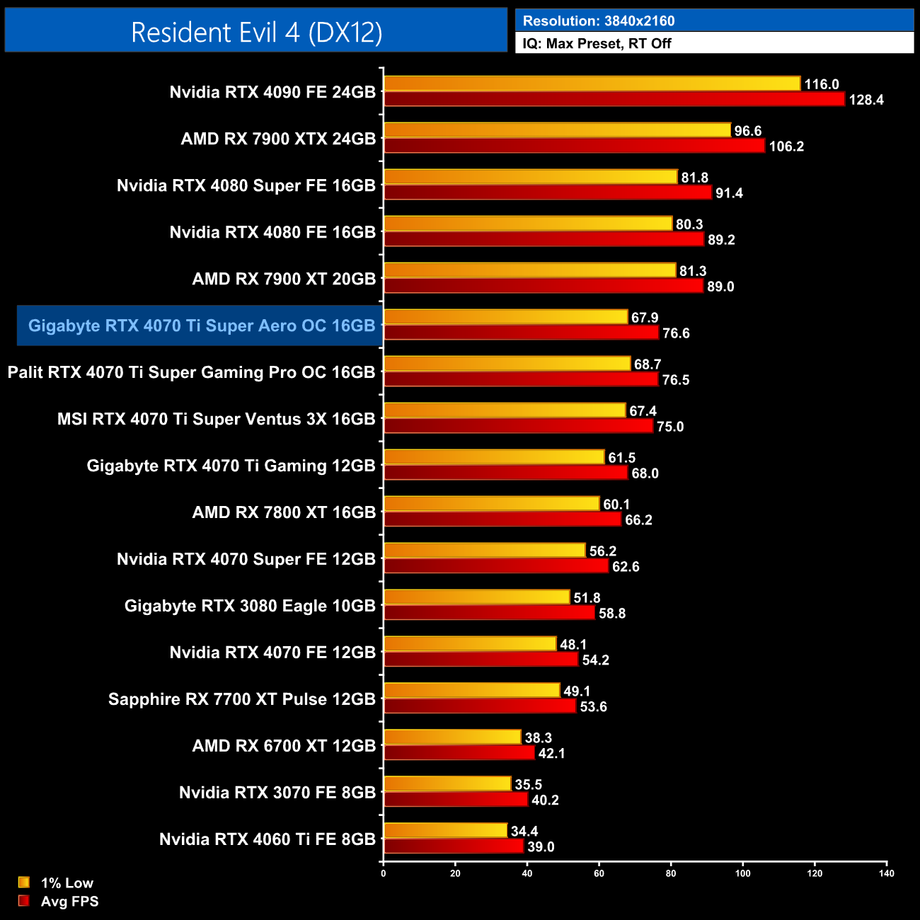 We don't focus heavily on gaming performance in our partner card reviews, for the simple reason that gaming performance is all very similar regardless of the model you opt for. As we can see above, the three RTX 4070 Ti Super card we have tested all perform within 1-2FPS of each other, so there's no discernible difference when gaming in the real world.