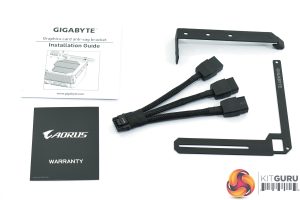 Inside, we get a couple of quick start and warranty guides, along with a triple 8-pin power adapter. The final thing is a nifty GPU support bracket that screws into two motherboard standoffs to provide a solid support for the card.