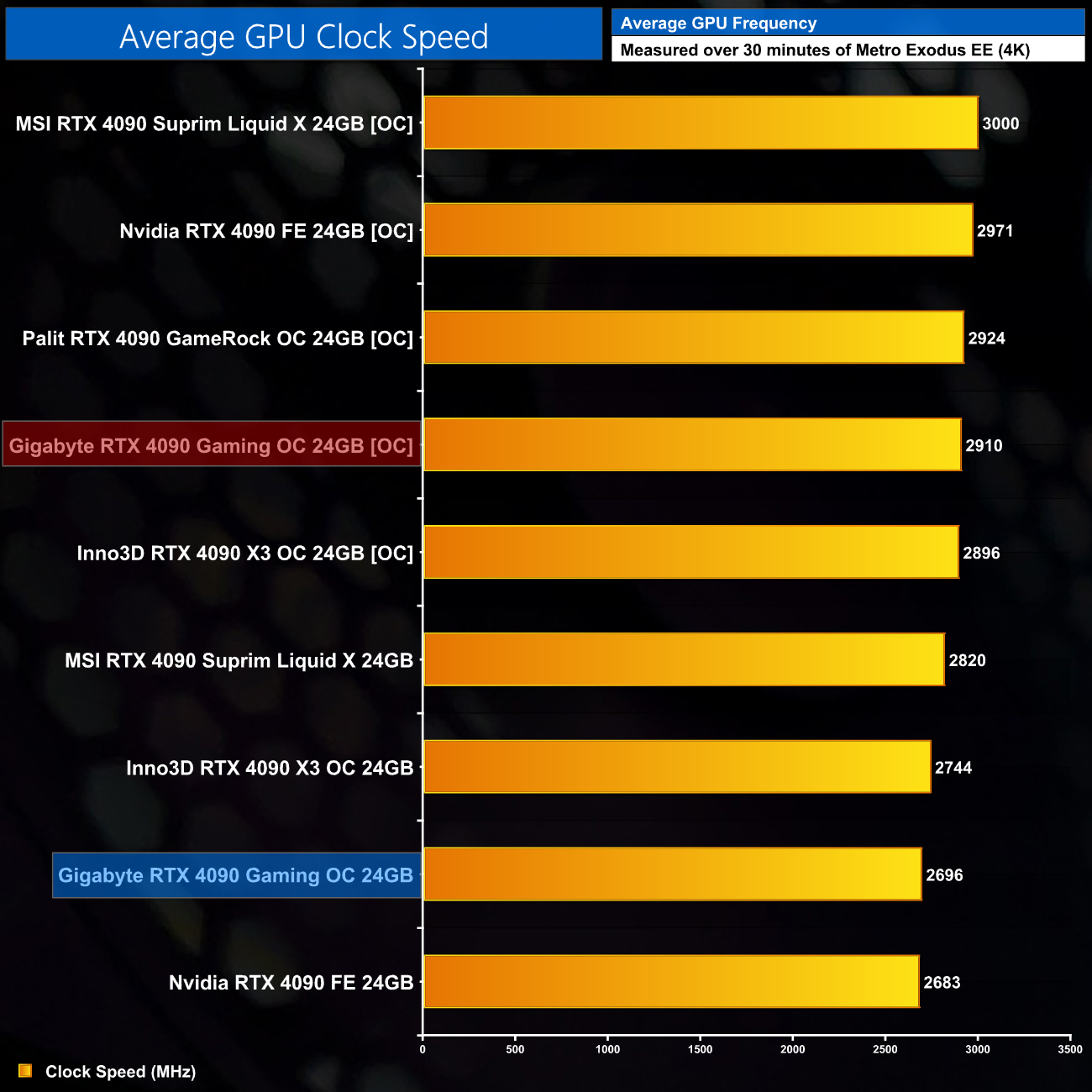 While the stock power limit is set to 450W, this can actually be increased all the way up to 600W for the Gaming OC – the first partner card we've tested that can do so. I was able to add 170MHz to the GPU and 1575MHz to the GDDR6X.