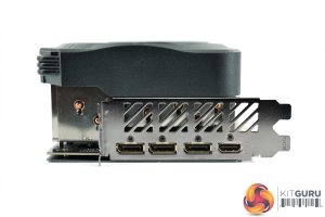 Display outputs are as expected, with three DisplayPort 1.4 and one HDMI 2.1. Interestingly Gigabyte has opted for a dual-slot PCIe bracket, instead of the triple-slot bracket we have come to expect. I don't think it will make a lot of difference either way but it is something to note.