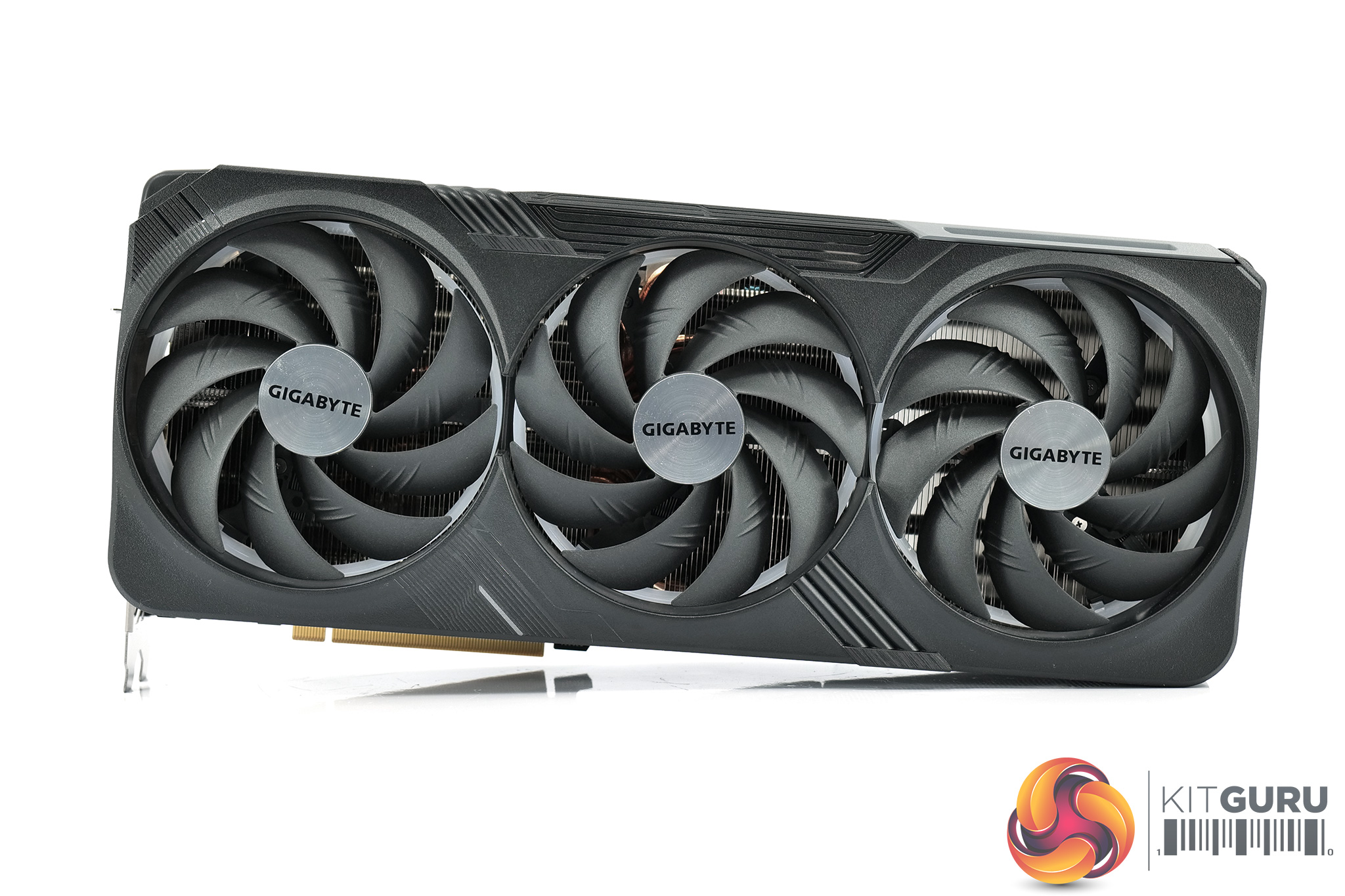 As for the card itself, Gigabyte has used a very understated shroud design, as it's almost entirely black – though the backplate is grey. It looks perfectly acceptable, but it is disappointing to see the shroud is made entirely from plastic, so it's not got a particularly premium feel. Considering the likes of the ASUS TUF 4090 uses an aluminium shroud, Gigabyte should be doing better here as the 4090 is an extremely premium product.