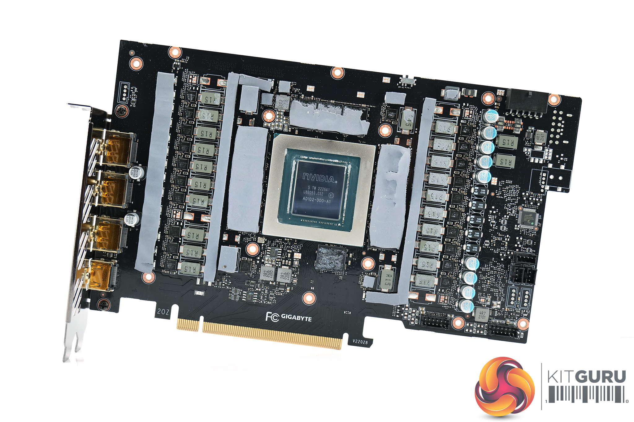 As for the PCB, Gigabyte is using a 20-phase VRM for the GPU and a 4-phase VRM for the memory, using UPI UP9512 controllers. 50Amp Vishay SIC653A MOSFETs are used across the board.