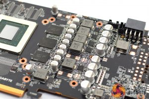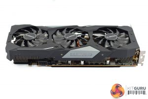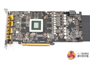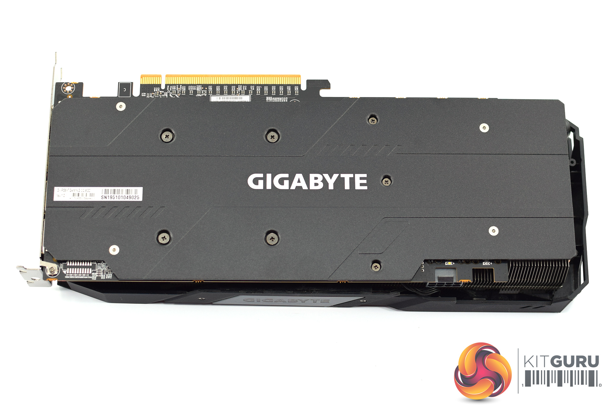 As for the backplate, this is a full-length design with no cut-outs whatsoever. It is made of aluminium, too, so it is reassuringly sturdy, and apart from the Gigabyte logo in the middle it is otherwise left bare.