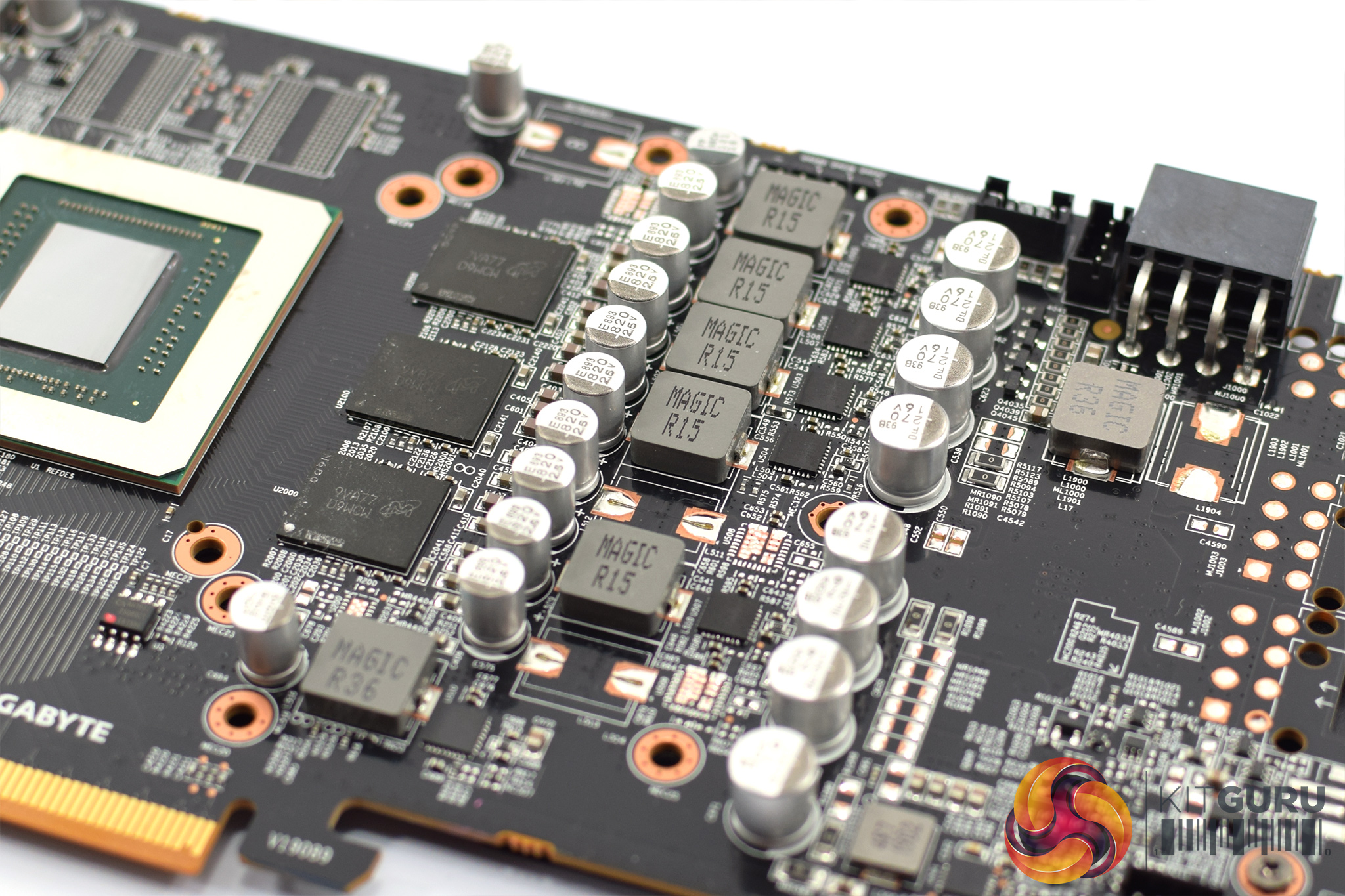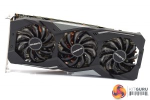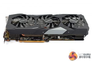 Gigabyte is also using its Windforce 3X cooler, with three 80mm fans. As we've seen previously, the middle fan spins in reverse relative to the outer fans, which Gigabyte says reduces any turbulence and enhances ‘the airflow pressure.'
