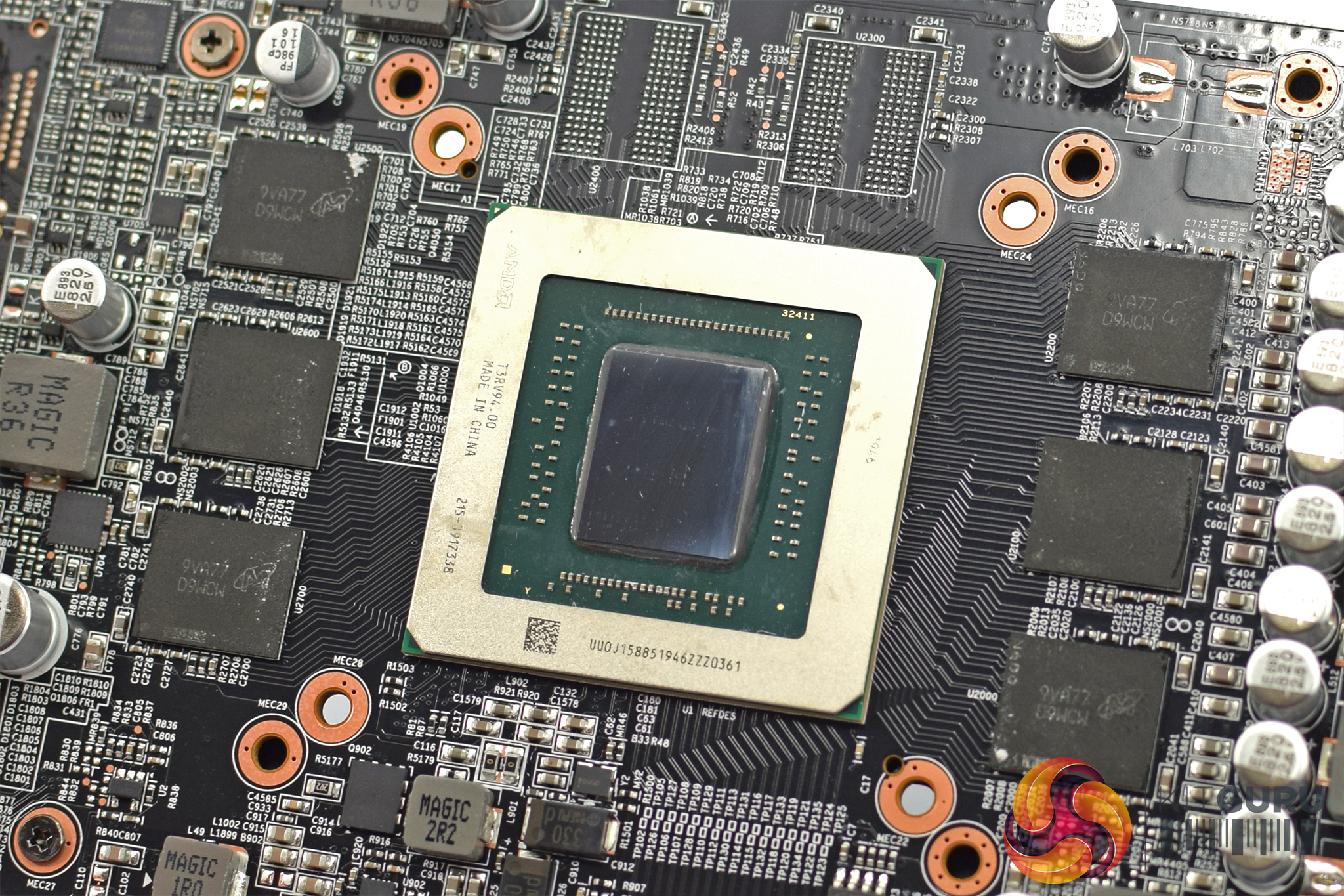 We can also get a look at the memory, these are ‘D9WCW' modules from Micron, specified at 14Gbps. Before the BIOS update, memory speed was set at 12Gbps, but the update has adjusted this to 14Gbps for this card.
