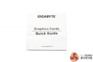 The backplate is a full-length metal design, with the Gigabyte logo printed in white. There is a tiny cut-out in the metal towards the end of the card, which Gigabyte calls ‘screen cooling', and it's designed to allow air to pass directly through the heatsink… but given how small the cut-out is, I'm not sure exactly how much it will accomplish!